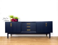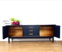 MID CENTURY MODERN, RETRO, VINTAGE G Plan SIDEBOARD / LONG TV CABINET / DRINKS CABINET painted in navy blue.